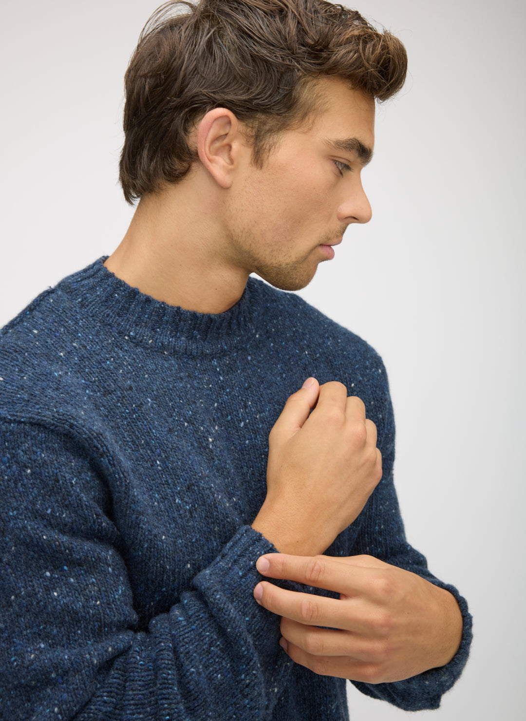 Heritage texture, modern ease. Crafted in Donegal yarn with 65% RWS extrafine merino wool, 30% recycled nylon, and 5% alpaca, this funnel neck sweater balances warmth, breathability, and durability. Designed in a classic fit with subtle seam details, it’s easy to layer for the office, weekend, or travel. Low-maintenance care makes it a reliable favorite for seasons ahead.
