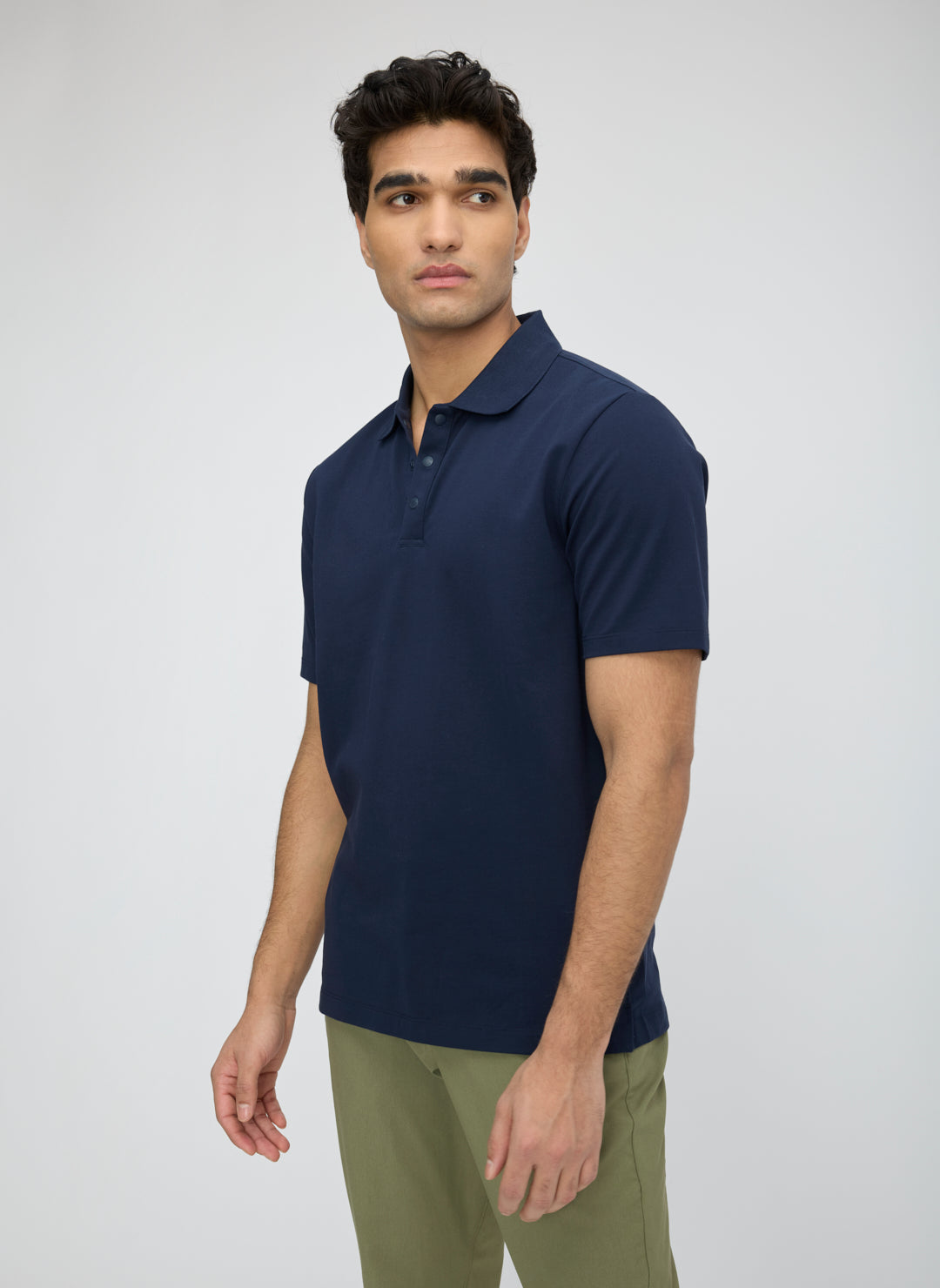 A modern men's polo designed for life on the move. Made from a lightweight, quick-drying, and anti-odor technical cotton, it keeps you feeling fresh and unrestricted. Premium touches like a flat-knit collar and front button placket make it a go-to for work, travel, and beyond.