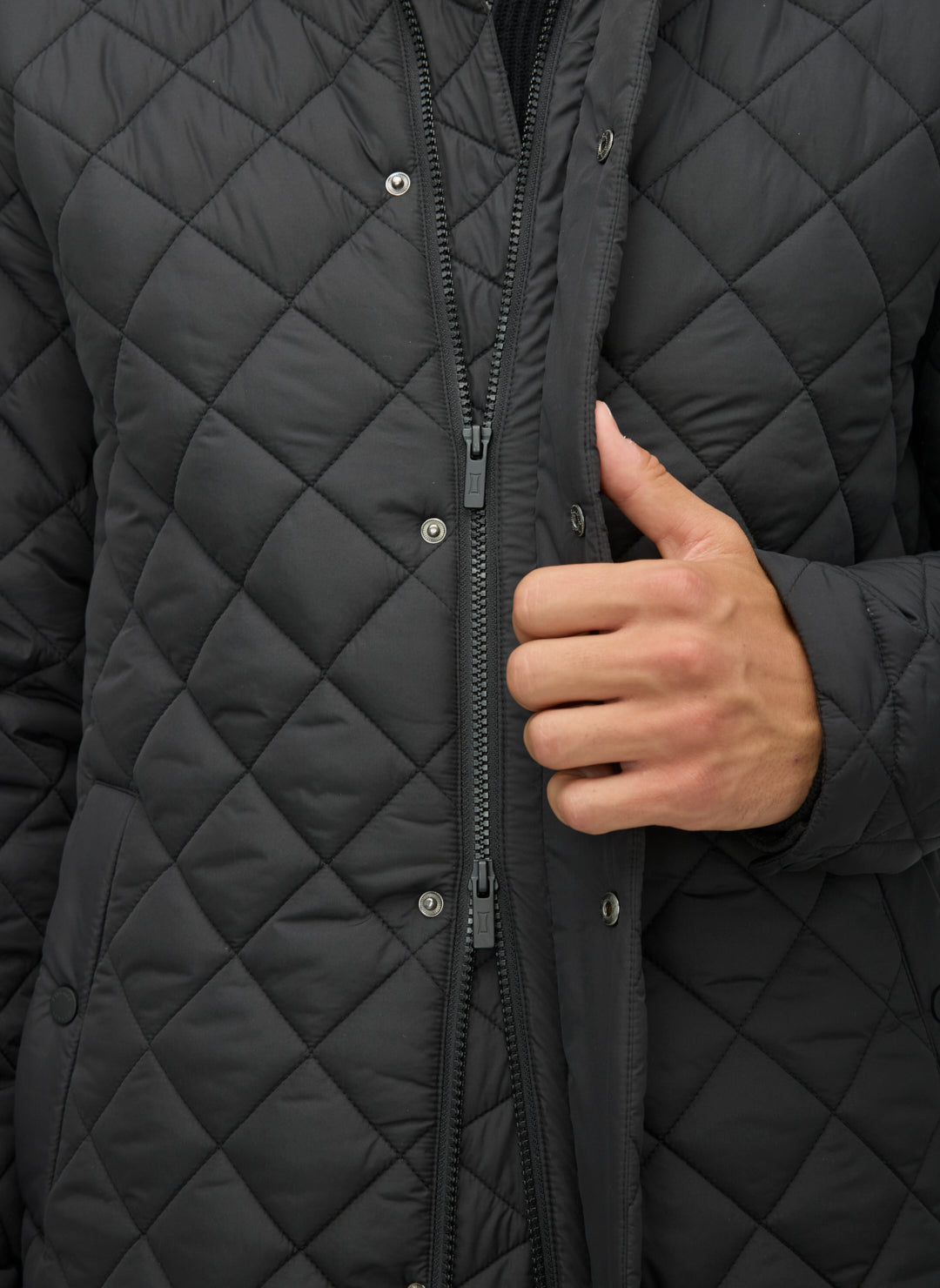 Insulation meets sophistication. The Bergen Recycled Quilted Coat is filled with lightweight PrimaLoft® insulation and crafted from RE:QUILT—our water-repellent recycled shell that’s soft, structured, and sustainable. Diamond quilting, a clean snap-and-zip front placket, and welt pockets lined in brushed tricot deliver comfort with polish. Made to layer easily and move with you, it’s your refined shield against winter’s chill.
