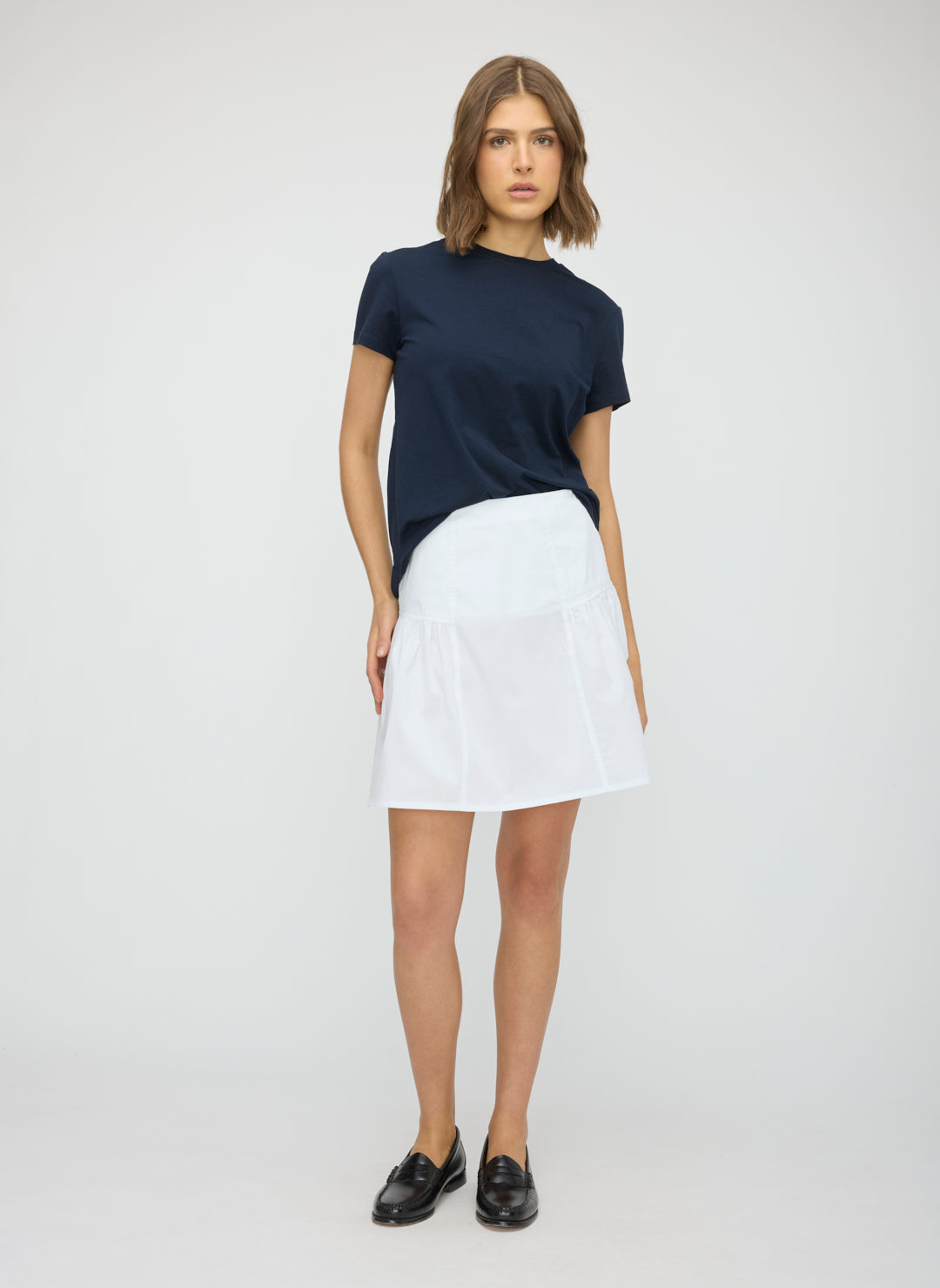 An easy update to a classic skirt. The Celina Dropped Waist Skirt keeps the waist clean and structured, then shifts into a more relaxed, gathered shape for a soft silhouette. Lightweight and breathable, it’s made for warm days when you want something simple that still feels considered.