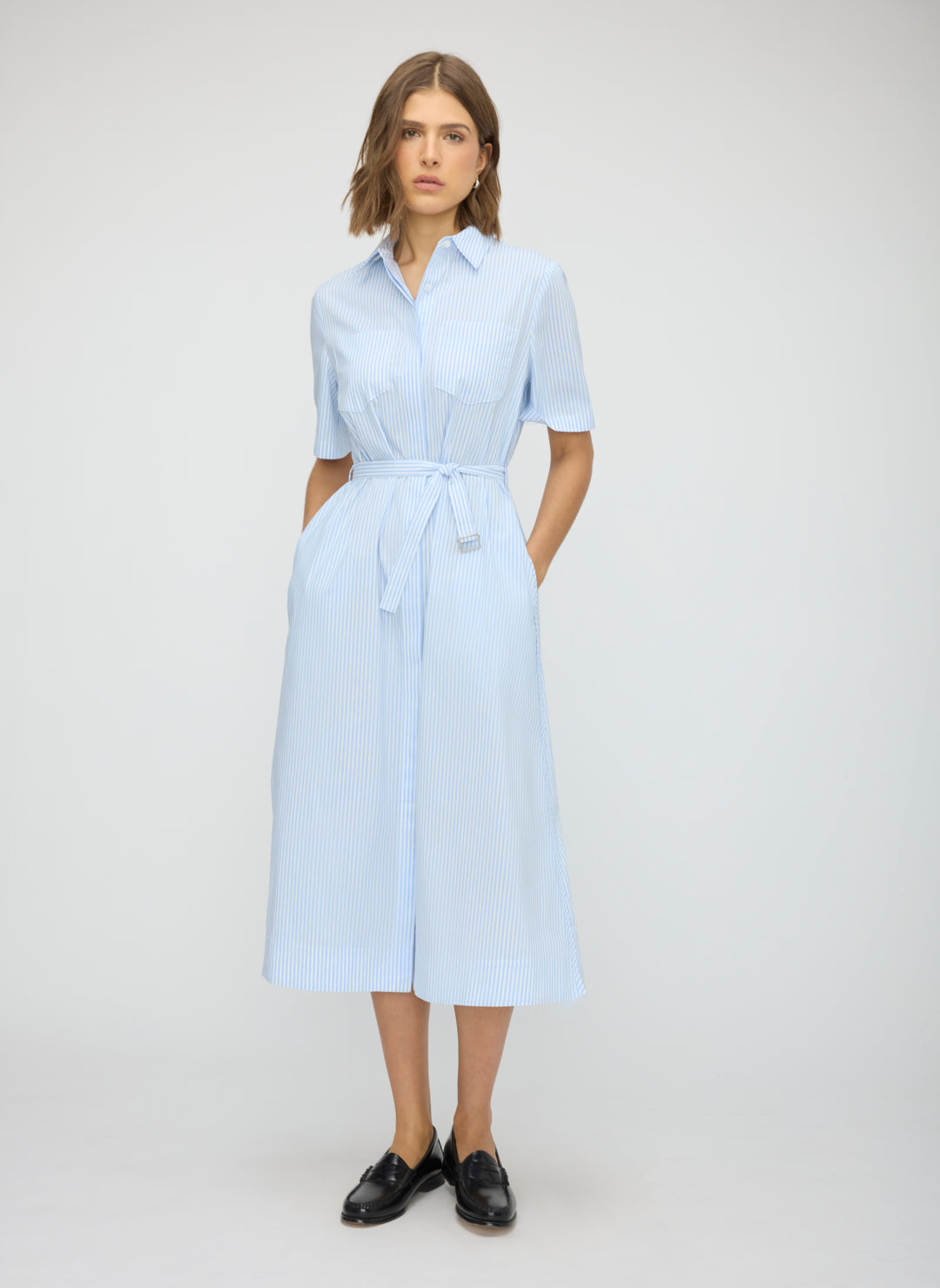 Relaxed midi silhouette with removable belt and classic shirt detailing
