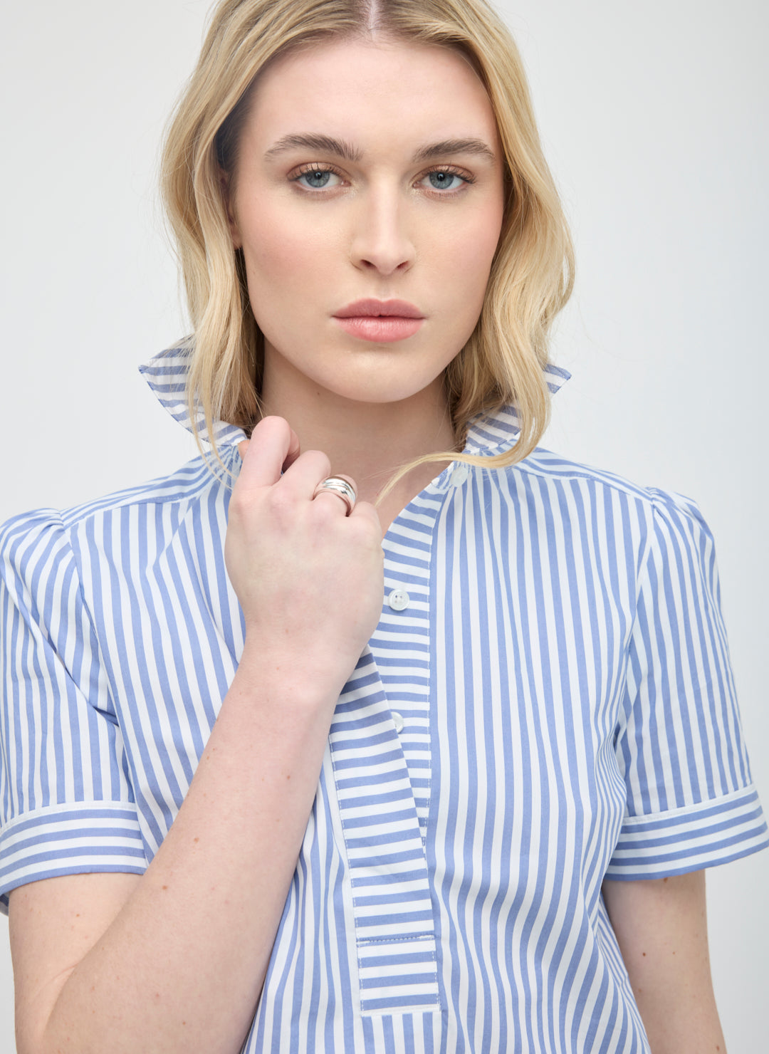 Light, crisp, easy to wear. The Celina Popover Shirt is made for days that call for something polished without the weight. A breathable, cooling fabric helps regulate temperature to keep you comfortable on warm, full days. Subtle stripe play and a clean popover neckline keep it feeling fresh.