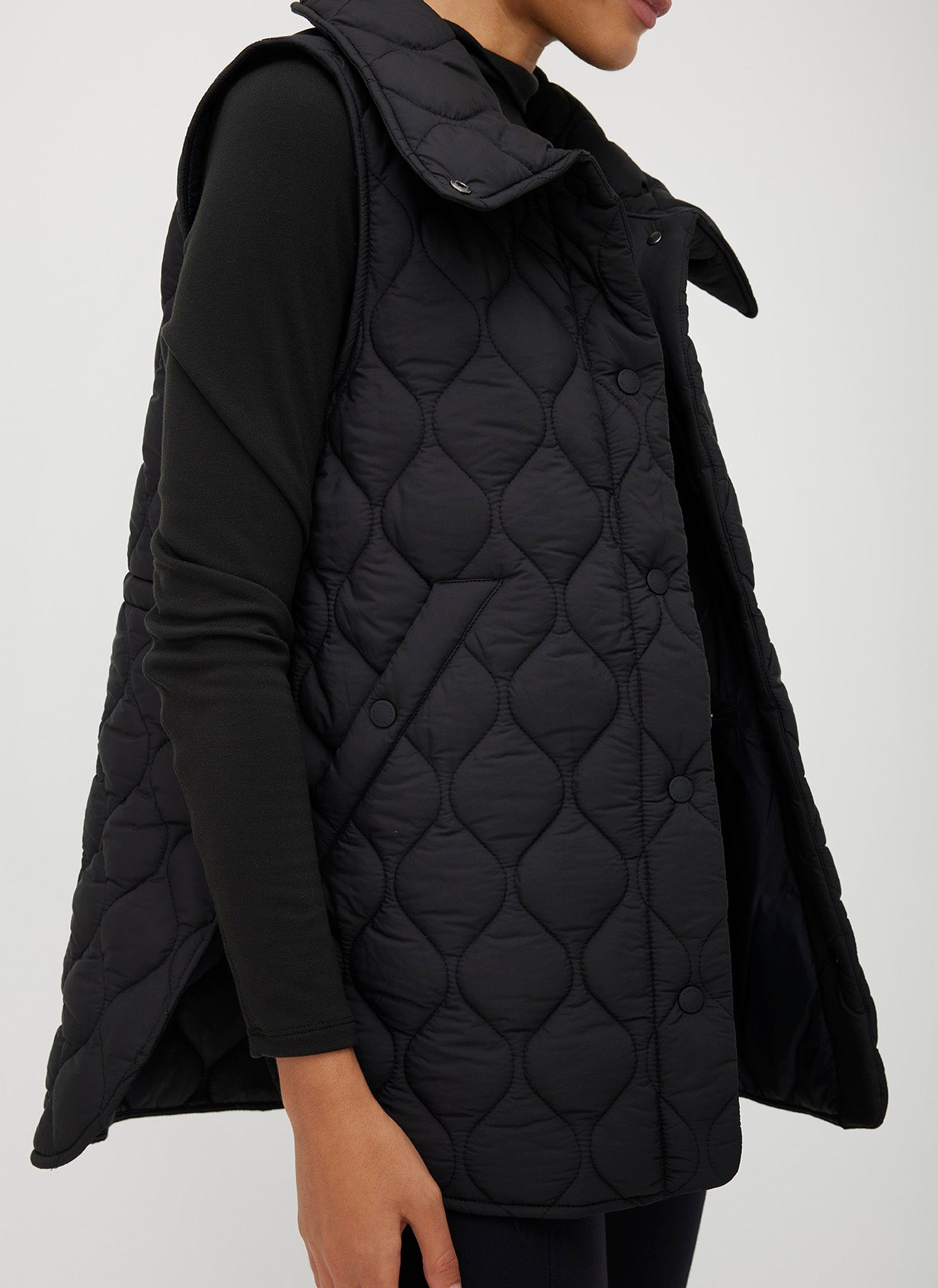An elevated quilted vest with warm and eco-friendly PrimaLoft® filling. This transitional weather staple features a versatile funnel neck that can be worn folded down or snapped up for extra warmth on cooler days. It includes a soft brushed tricot lining and interior zippered pockets to securely store your essentials, along with side vents and a curved back hem for sophisticated functionality. Made from lightweight, water-resistant, and fade-resistant fabric, this insulated vest is easy to care for, making it a timeless style for effortless layering.