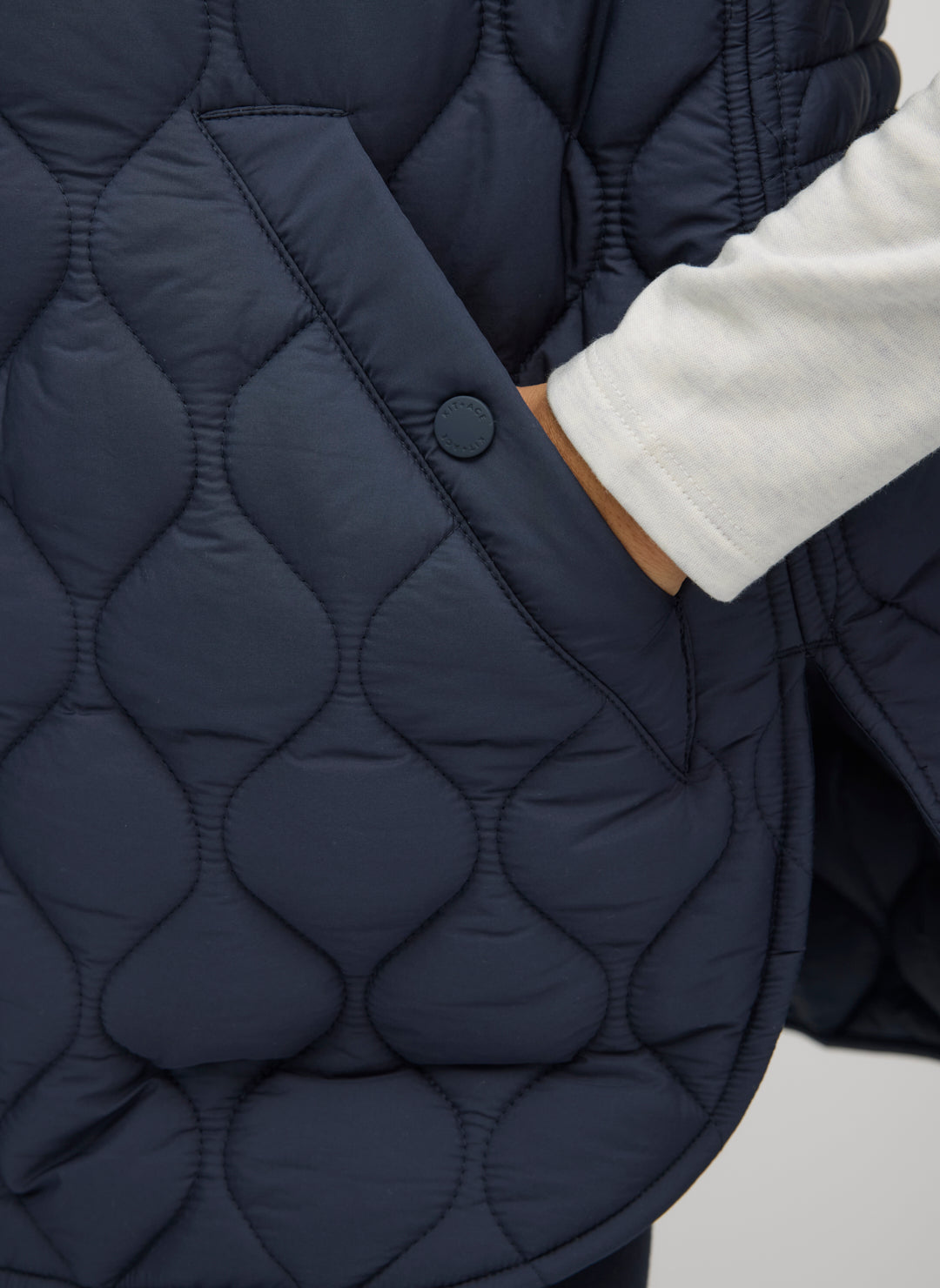 An elevated quilted vest with warm and eco-friendly PrimaLoft® filling. This transitional weather staple features a versatile funnel neck that can be worn folded down or snapped up for extra warmth on cooler days. It includes a soft brushed tricot lining and interior zippered pockets to securely store your essentials, along with side vents and a curved back hem for sophisticated functionality. Made from lightweight, water-resistant, and fade-resistant fabric, this insulated vest is easy to care for, making it a timeless style for effortless layering.