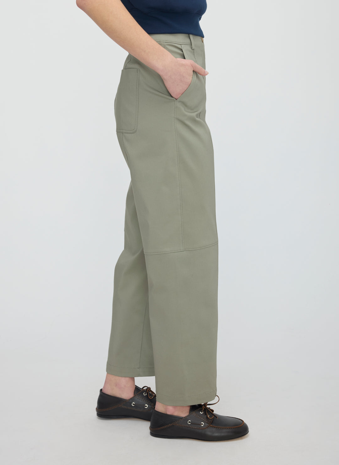 Relaxed through the hip, curved through the leg. The Colette Barrel Leg Pants are crafted from breathable Utility Cotton with built-in stretch for all-day comfort. The sculpted barrel silhouette brings a fresh perspective to everyday dressing, while the durable, preshrunk fabric keeps it grounded—balancing weekday polish with weekend ease.