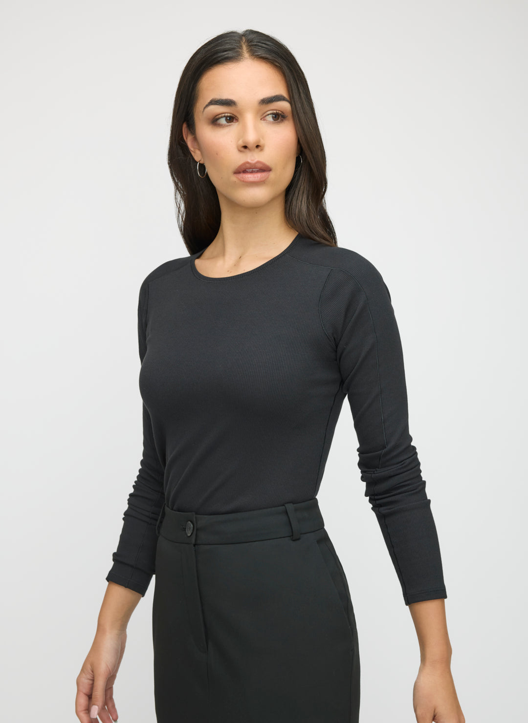 Everyday ease, elevated. Designed in a slim fit, the Cyprus Long Sleeve Crew features raglan sleeves and a curved hem for a refined finish. The modal rib knit feels smooth, stretches effortlessly, and flatters every line. From work to weekends, this is a top that works everywhere.