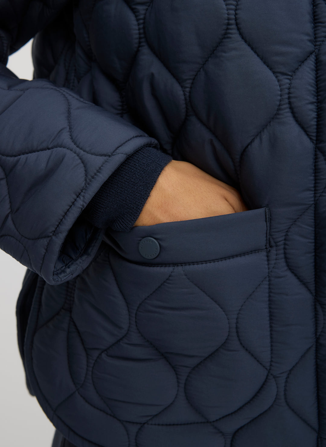 This has-it-all jacket delivers lightweight warmth with modern high-tech details. Made from 100% recycled polyester, it’s insulated and water-resistant to keep you dry and cozy in dropping temperatures. Its relaxed fit provides room to layer, with an elegant curved high-low hem, a versatile funnel neck that snaps up or down and plenty of pockets for all your essentials. This jacket is understated and polished, supporting a life in balance.