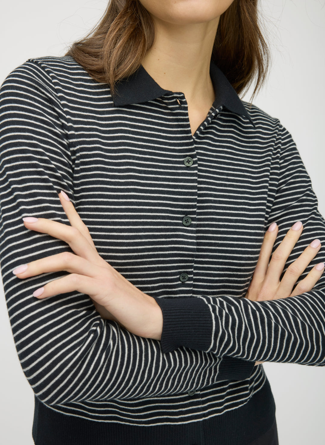Simplicity, elevated. The Cotton Cashmere Cardigan is cut in a fine-gauge knit that balances structure with softness. A polo collar lends subtle polish, while a centre-back pointelle detail adds understated interest. Lightweight, breathable, and versatile, it’s the cardigan designed to move seamlessly through your week. Build your uniform around it.