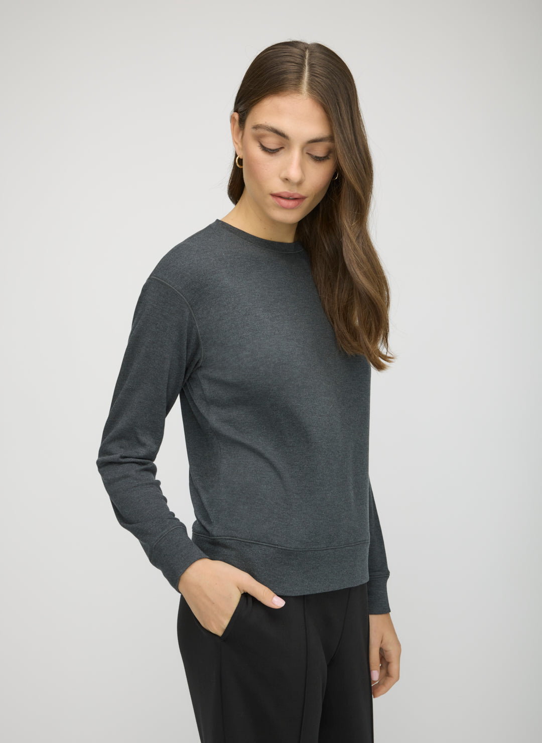 A women's long sleeve crewneck so classic, you’ll find yourself reaching for it 24/7. With details that last, like zigzag topstitching, reinforced seams, and four-way stretch, this warm and cozy brushed-feel pullover is a wardrobe staple designed to keep up to the demands of your day. Sure to be the softest staple in your closet, this is one crewneck you’ll be wearing around the clock.