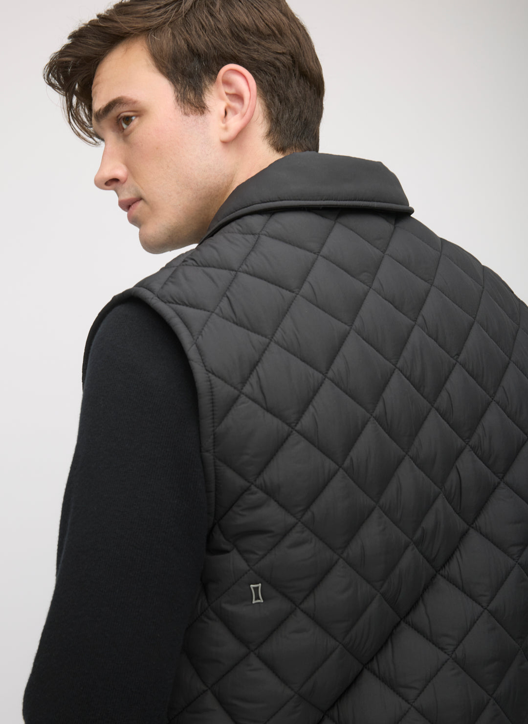 A modern vest built for crisp days. Crafted from recycled fibres with a water-repellent finish, the Bergen Recycled Quilted Vest delivers light insulation in a sleek, easy-layering profile. Snap buttons, secure welt pockets, and an adjustable hem add function without bulk. From weekday commutes to weekend hikes, it’s made to keep pace. Machine-washable and ready for whatever’s next—zip it up and get moving.