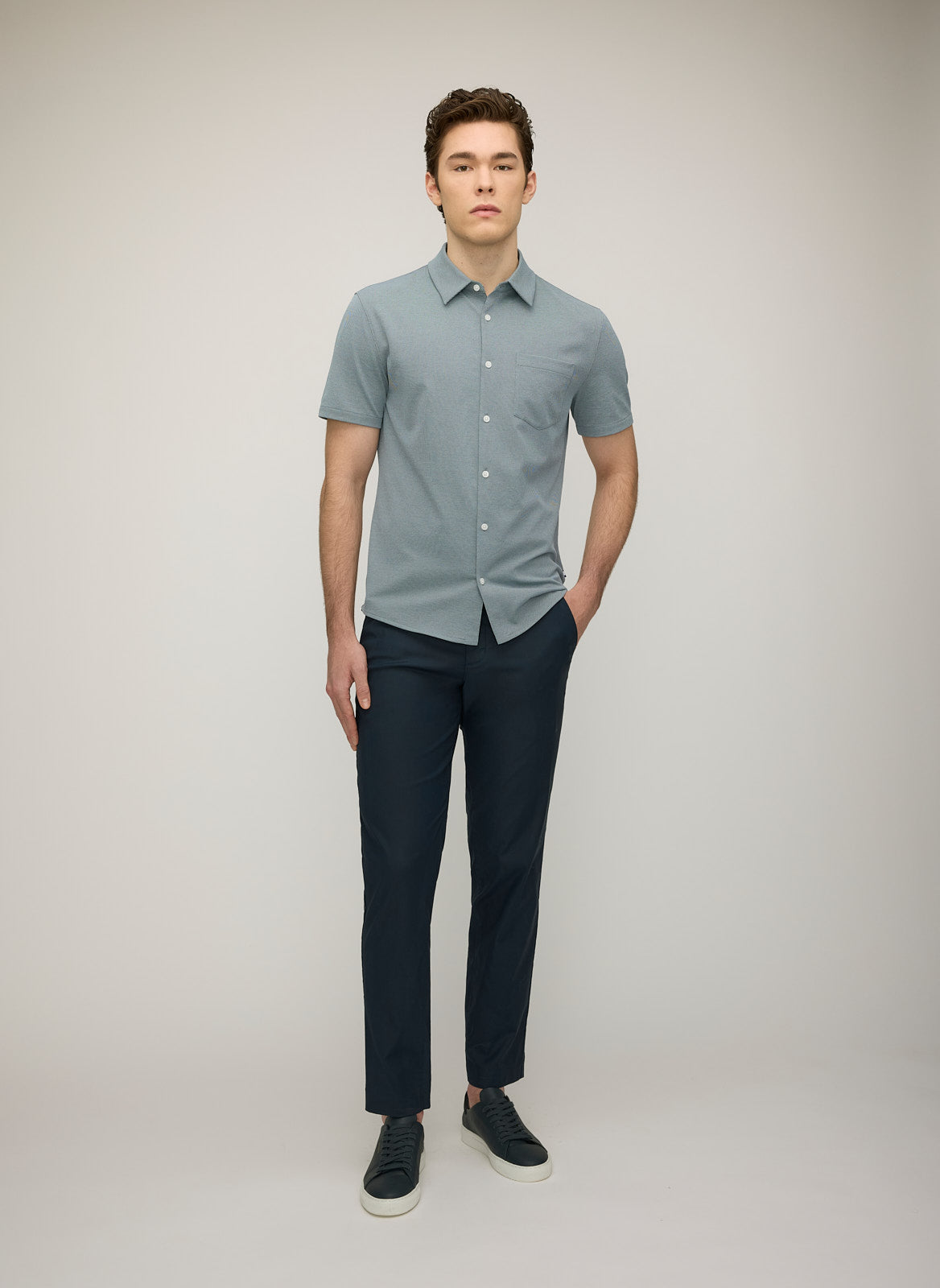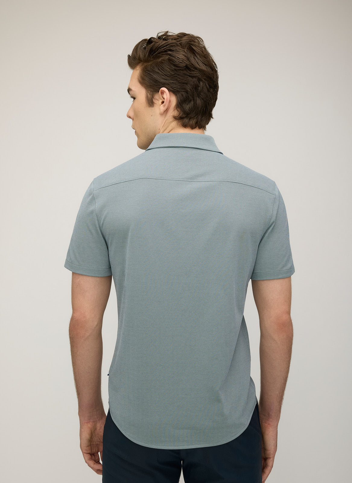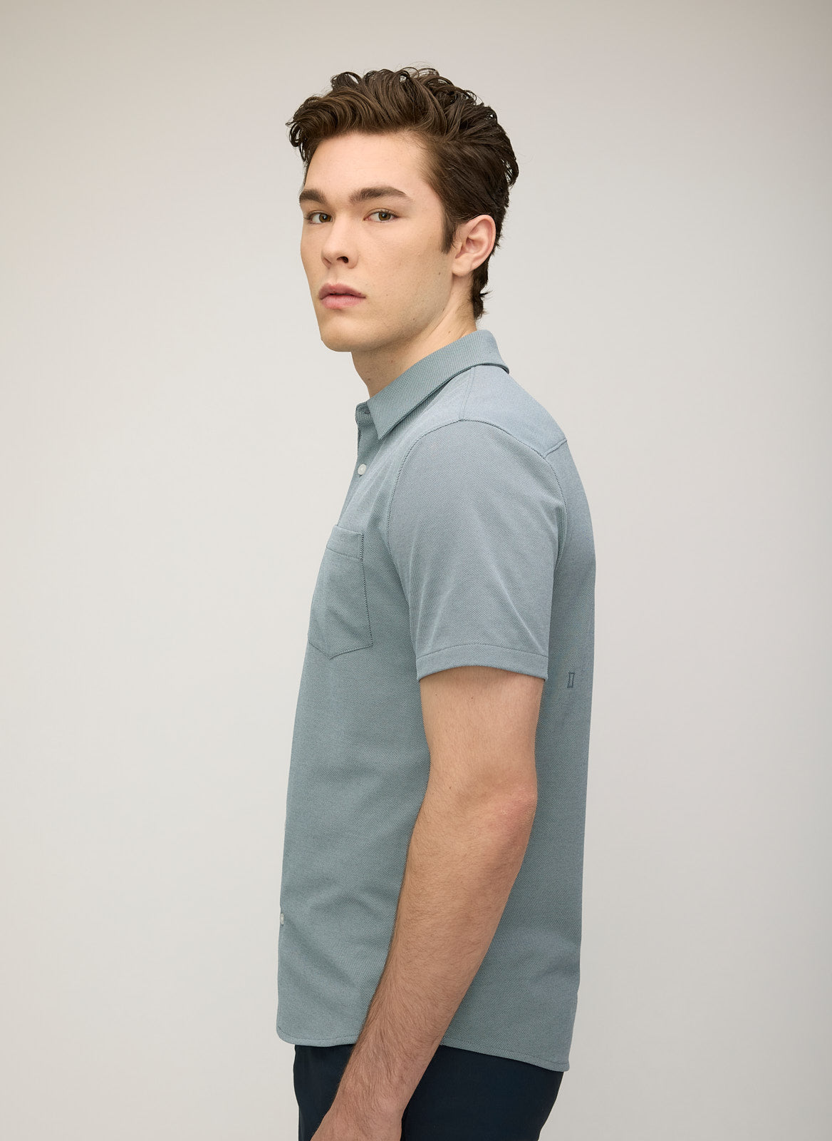 Wears like a knit, works like a button-up. The men's Birdseye Shirt is made from a textured stretch knit that’s breathable, moisture-wicking, and quick-drying. With a structured collar, button-front, and short sleeves, it gives you all the polish with more performance.