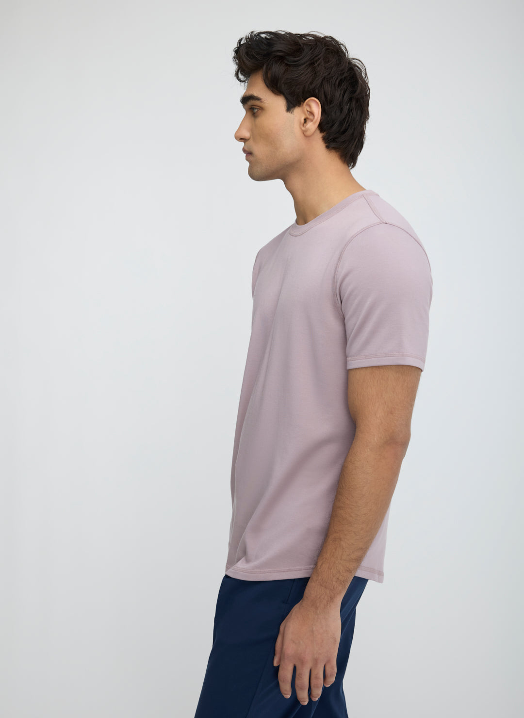 A classic fit crewneck men's tee with a luxuriously soft-touch brushed texture. This tee will keep you insulated, but is light enough to pack in multiple colors. Preshrunk for your convenience and designed to pair well with your entire wardrobe. An elevated take on an enduring staple.
