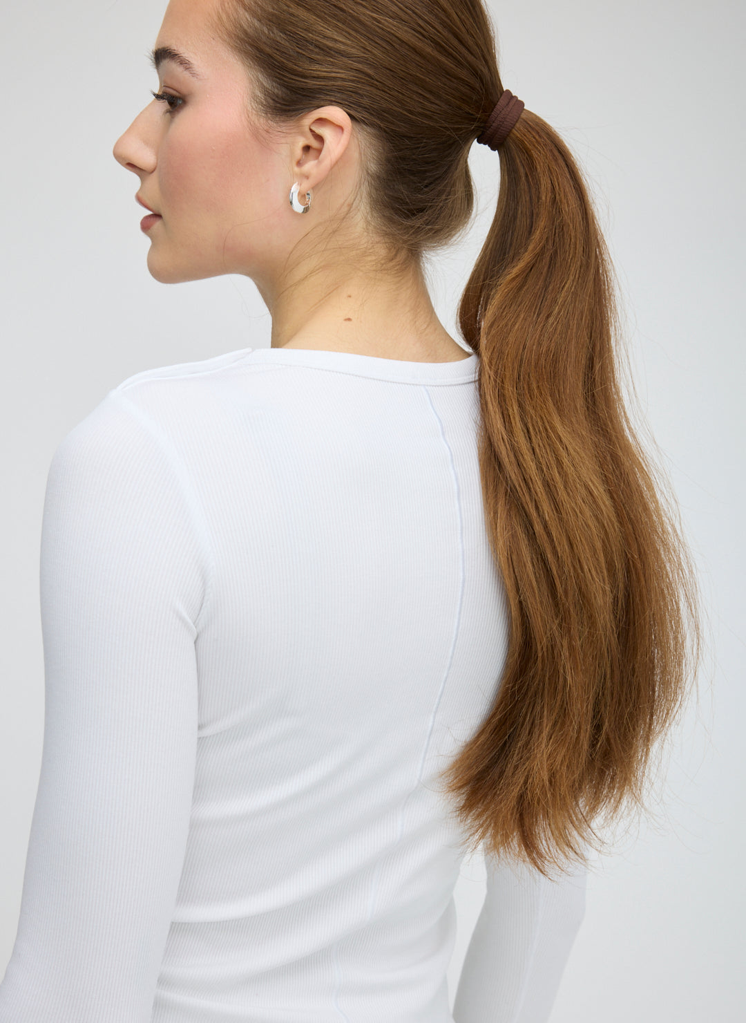 Super-flexible modal rib fabric for a smooth, fitted silhouette.