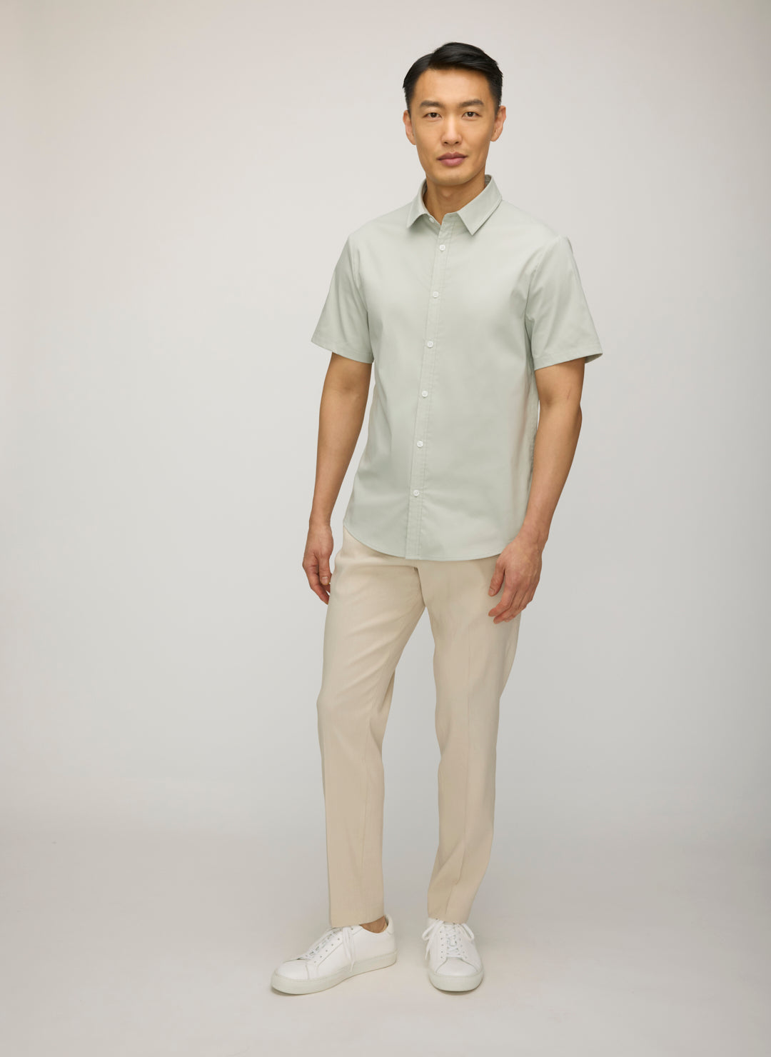 The ease of linen, made even easier. These men's slim-fit pants are cut from Comfort Linen—soft, stretchy, breathable, wrinkle-free and machine washable. Finished with angled slash pockets, back welts, and a hidden interior pocket, they go wherever your day takes you.